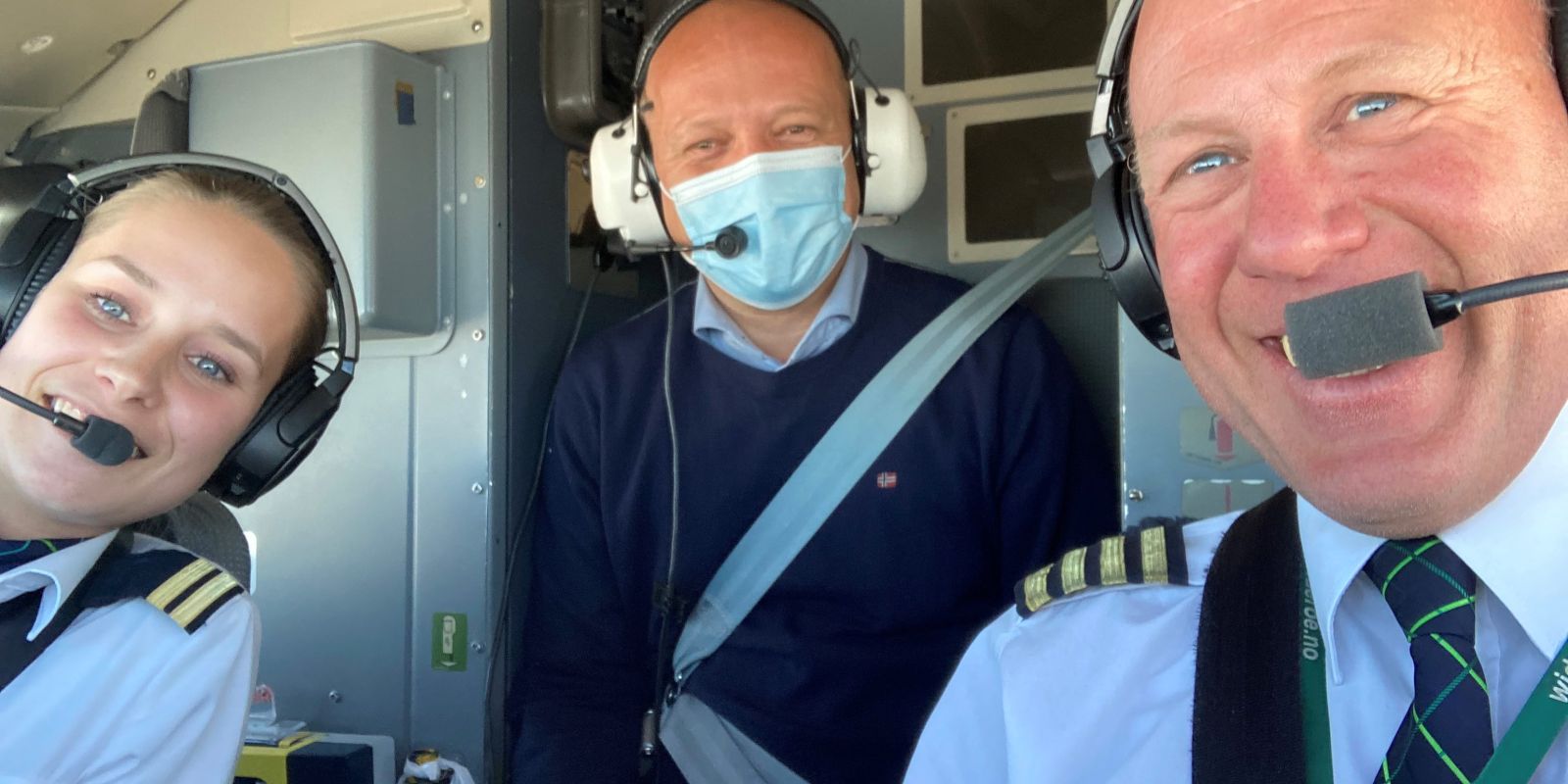På turen fikk han besøke cockpit, og ble møtt av kaptein i Widerøe og nestleder Aleksander Wasland i Norsk Flygerforbund. I tillegg var Judith Atterås med som styrmann.